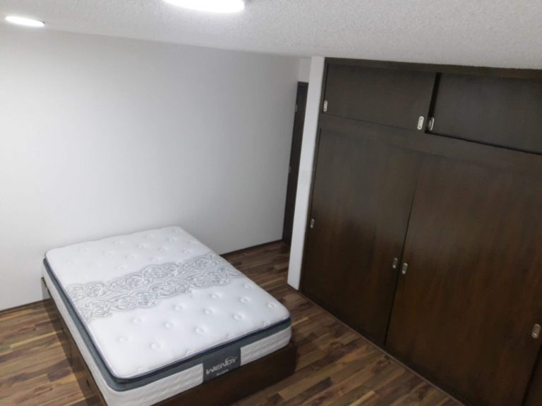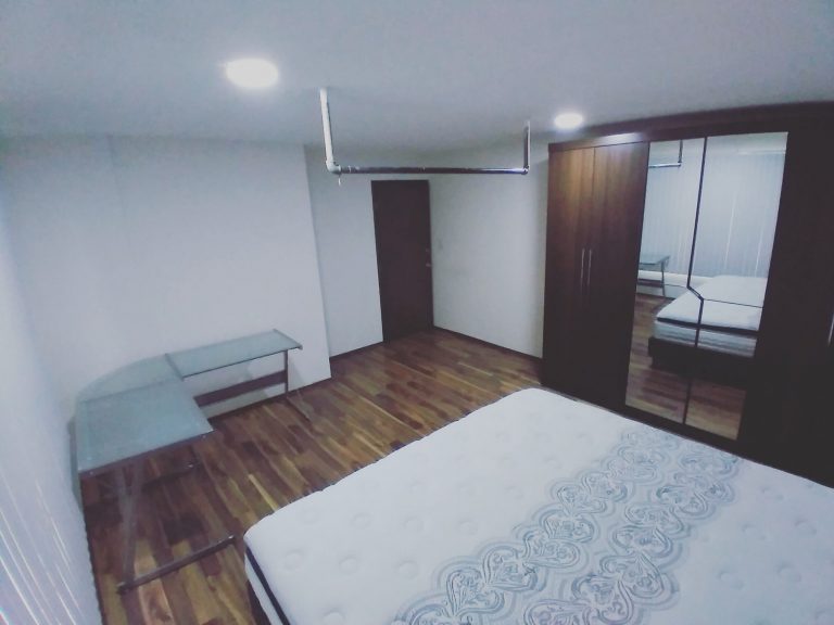 Habitaciones individuales parcialmente amuebladas para estudiantes y profesionales con camas king, queen, matrimonial e individual, armario y escritorio. Incluyen acceso a cocina equipada, internet ultrarrápido, servicios de gas y electricidad, y mantenimiento mensual. Contrato flexible de 2 a 6 meses, renovable o cancelable después del segundo mes.